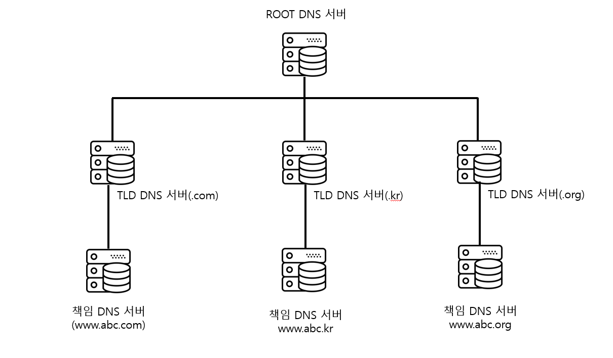 로컬 DNS : DNS 서버 계층구조에는 속하지 않음, 인터넷 서비스 제공업체(ISP)가 관리하는 DNS서버