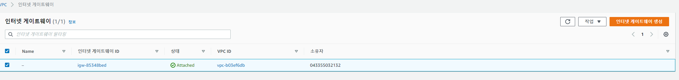 IGW를 위에서 만든 VPC와 연결을 해줘야 한다.